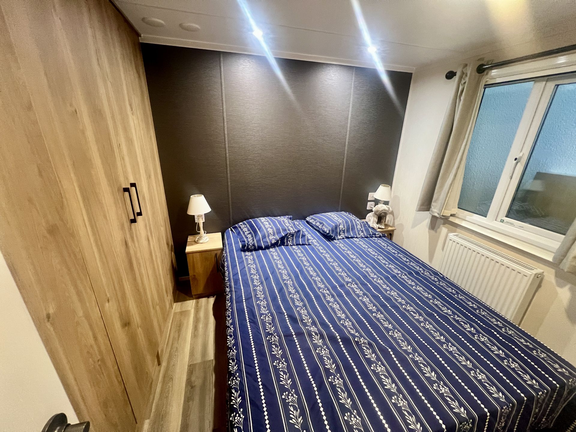 Les chambres à coucher sont conçues pour offrir confort et intimité, avec des matelas de haute qualité et de grands espaces de rangement. La salle de bains est équipée d'installations sanitaires contemporaines et d'une cabine de douche spacieuse.